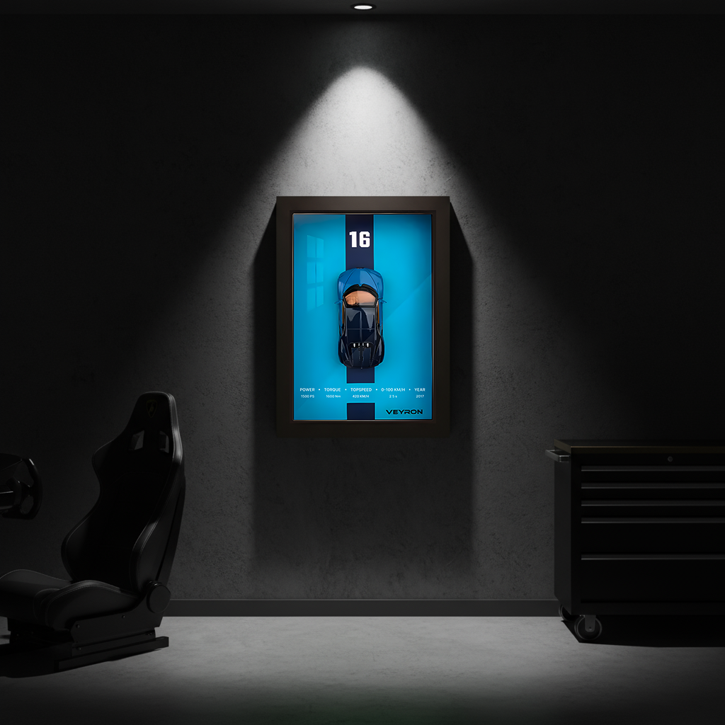 Elevate your garage, office, or man cave with museum-quality 3D car frames. Perfectly illuminated and expertly crafted, each piece becomes the focal point of any room. The sleek black frame and precision details create a stunning visual statement that celebrates your passion for automotive excellence.