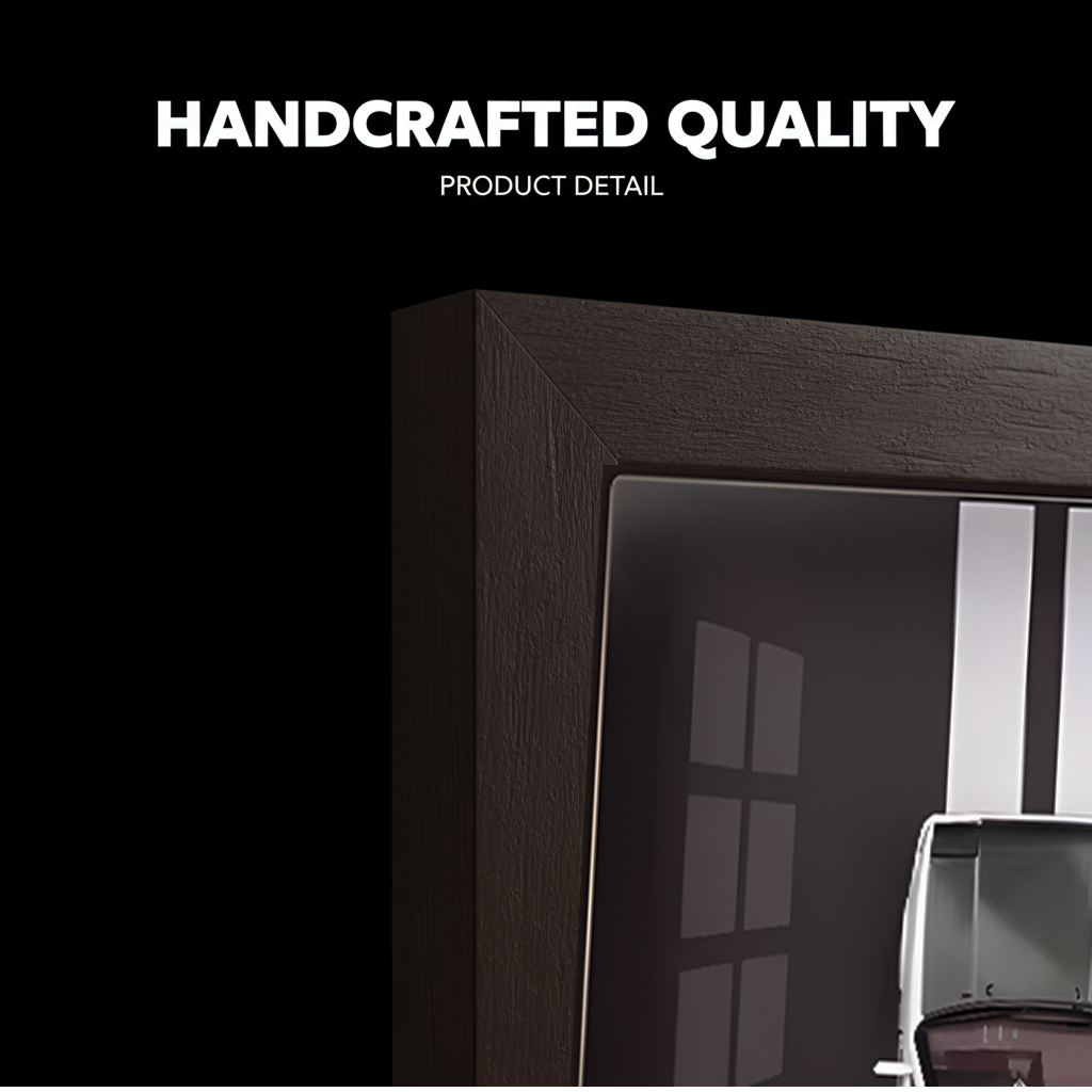 Each frame is meticulously handcrafted with precision and care. Our artisans use premium materials and traditional techniques to create a product that stands the test of time. The rich, textured wood finish and expert construction ensure that every piece is not just a frame, but a work of art that beautifully showcases your passion.